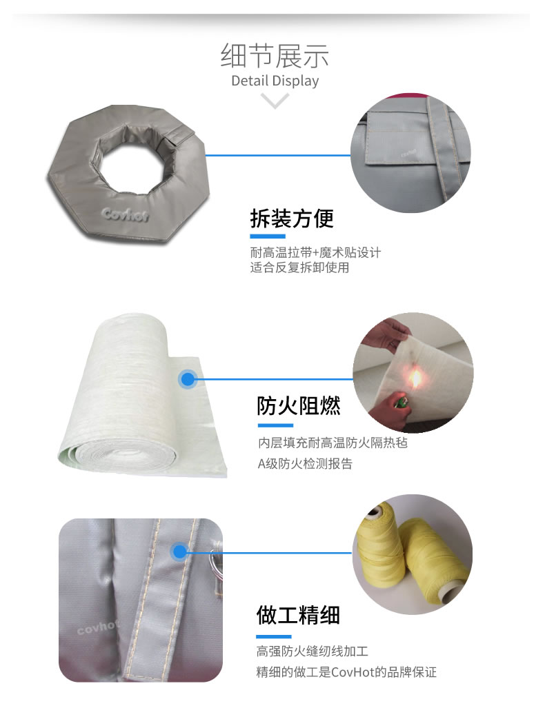 可根據(jù)需要量身定做,加工異形產(chǎn)品。產(chǎn)品適應(yīng)性強(qiáng):適用于不同溫度,不同形狀的管道設(shè)備防護(hù)。比如特殊高溫管道、閥門、泵體等,都可以使用柔性可拆卸保溫套。可以根據(jù)設(shè)備圖紙進(jìn)行定做,有助于車間工廠有效節(jié)能,提高生產(chǎn)率。